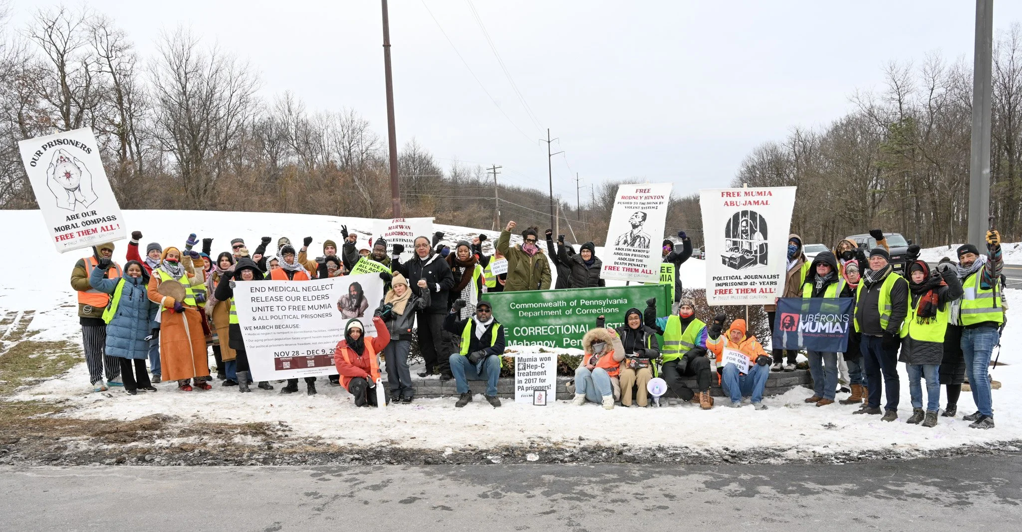 Around 150 participants filled both sides of the entrance road to State Correctional Institution (SCI) Mahanoy for a rally on Dec. 9 – the final day of the historic March for Mumia. The march demanded “Justice for Mumia Abu-Jamal, End Medical Neglect [in Pennsylvania prisons] and End Elder Abuse.”