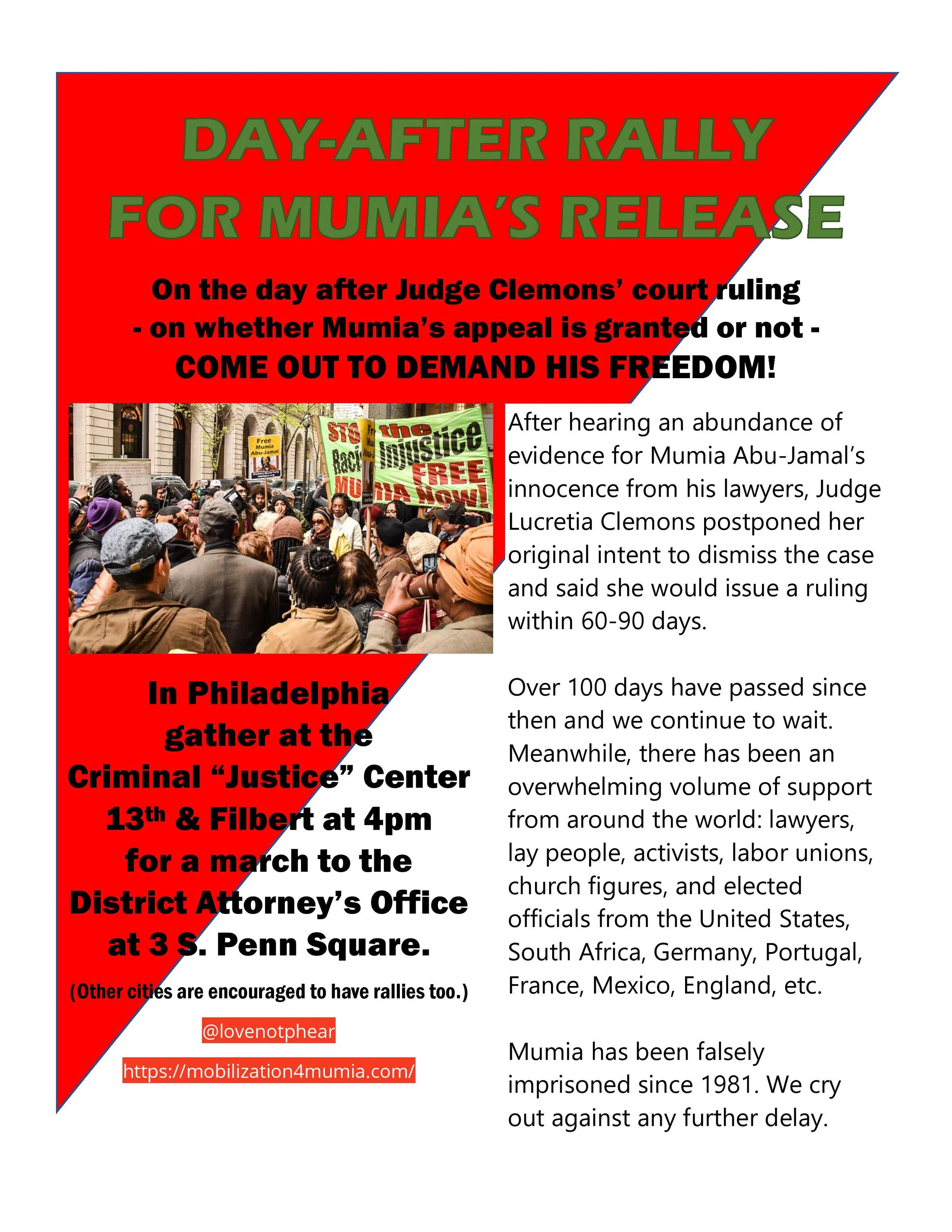 Jan 5 Peoples Constitutional Protest Party for Mumia’s Freedom